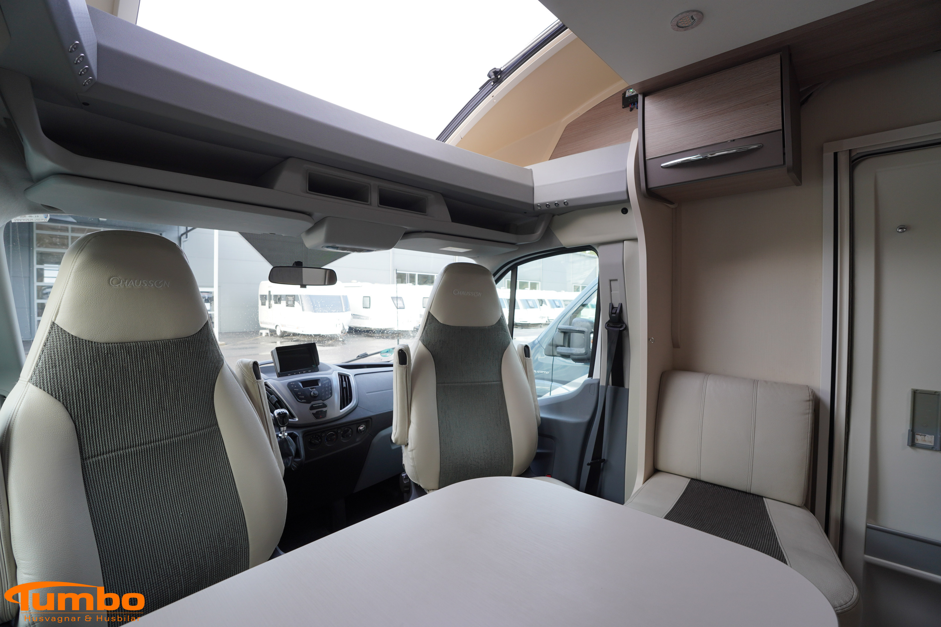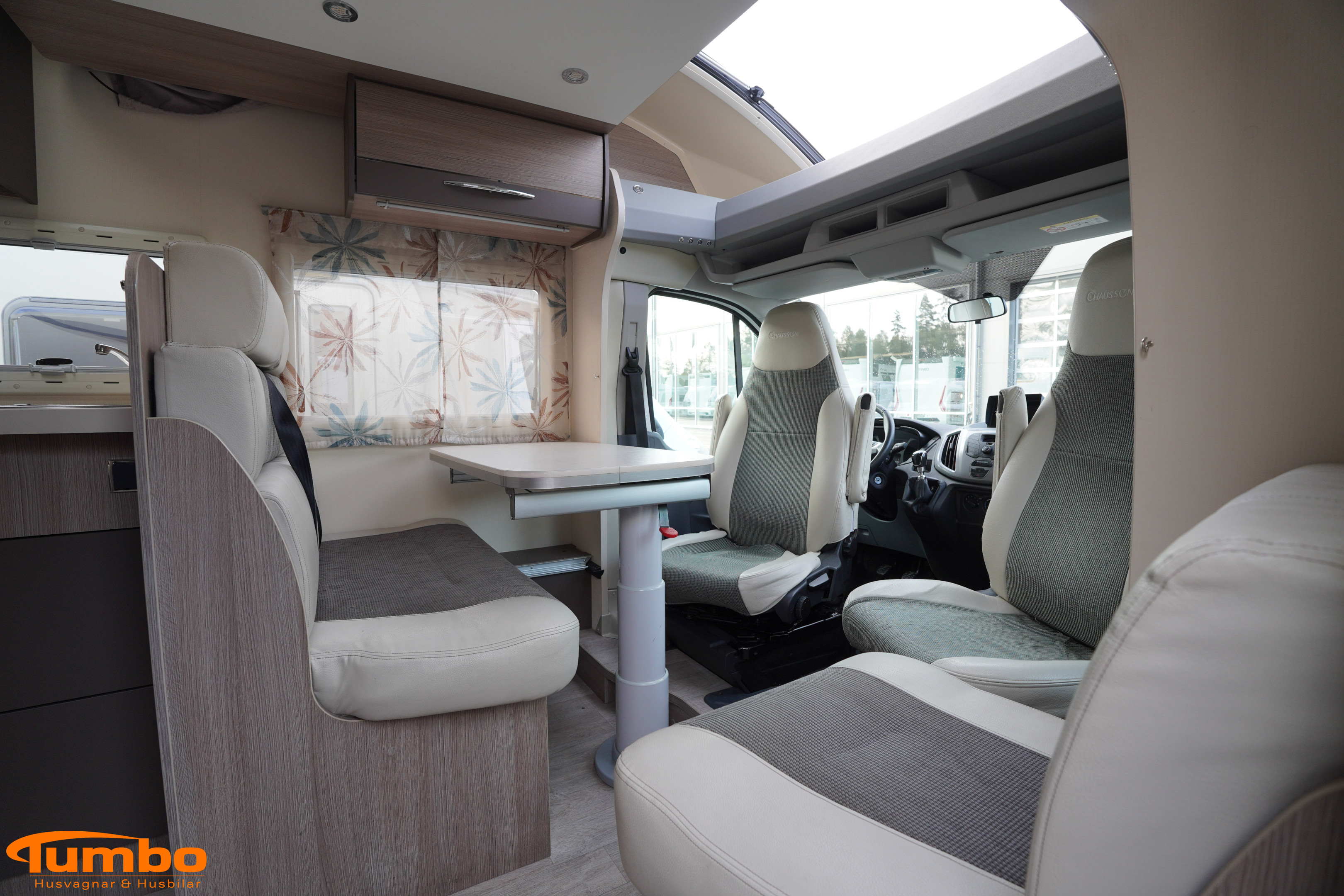 En begagnad husbil från Chausson, årsmodell 2016. Som har rullat 6500 mil, Manuell växellåda med en 155 hk stark motor. Med plats för 3 passagerare och 4 sovplatser. Uppvärmining med Truma luftburen värme