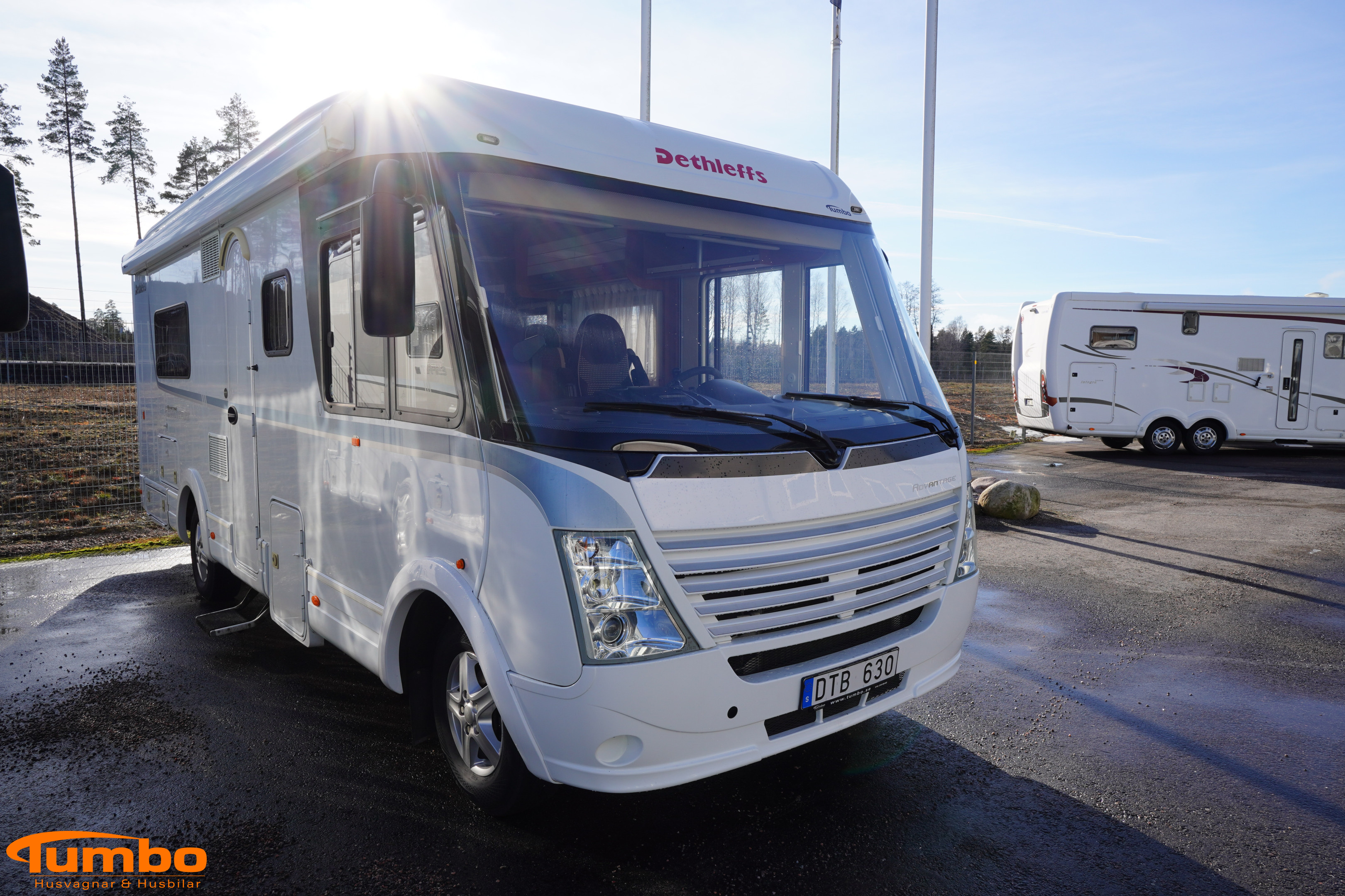 En begagnad husbil från Dethleffs, årsmodell 2012. Som har rullat 7000 mil, Manuell växellåda med en 177 hk stark motor. Med plats för 3 passagerare och 4 sovplatser. Uppvärmining med Alde vattenburen värme