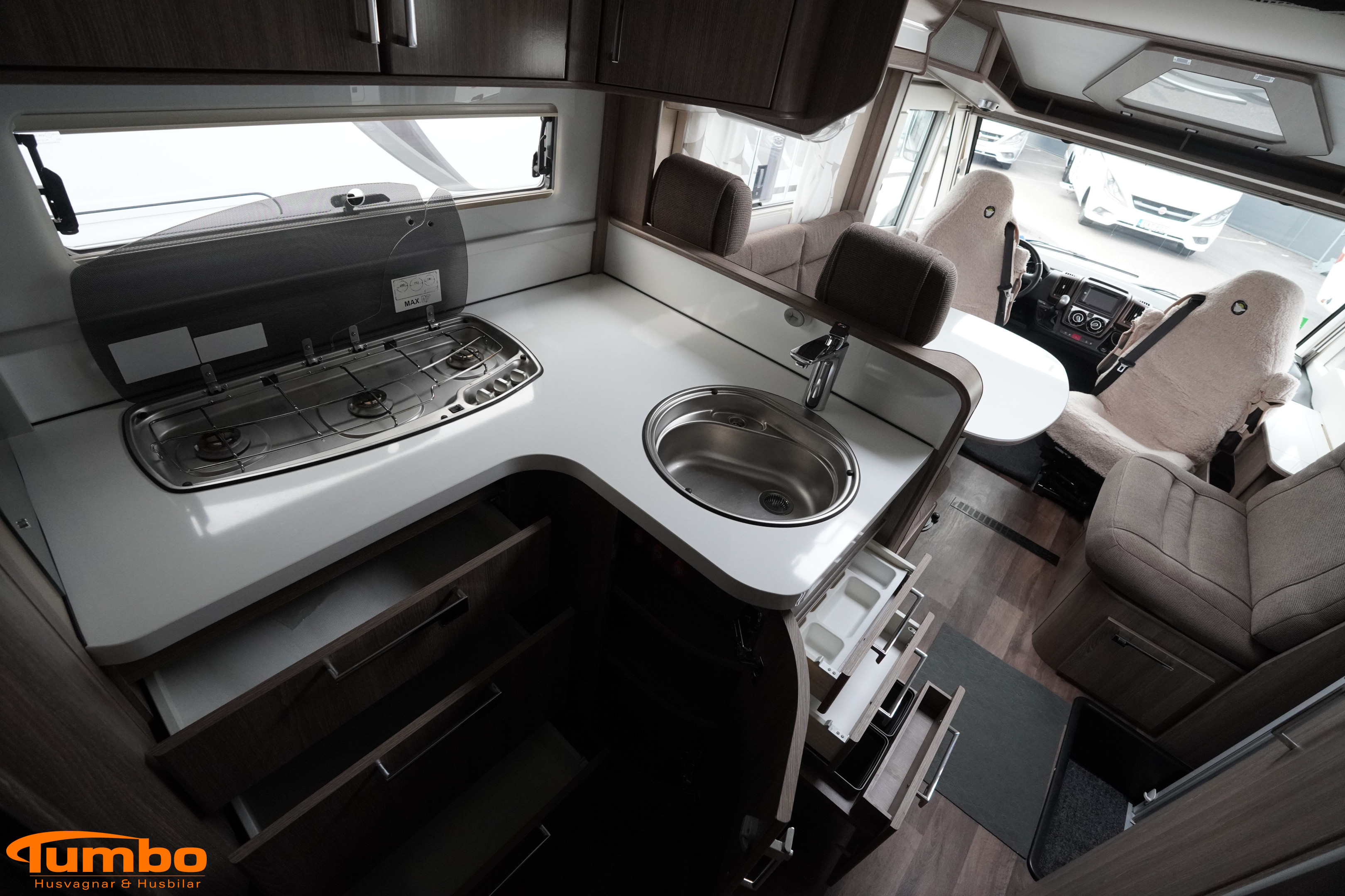 En begagnad husbil från KABE, årsmodell 2017. Som har rullat 5800 mil, Automatväxellåda med en 177 hk stark motor. Med plats för 3 passagerare och 4 sovplatser. Uppvärmining med Alde vattenburen värme