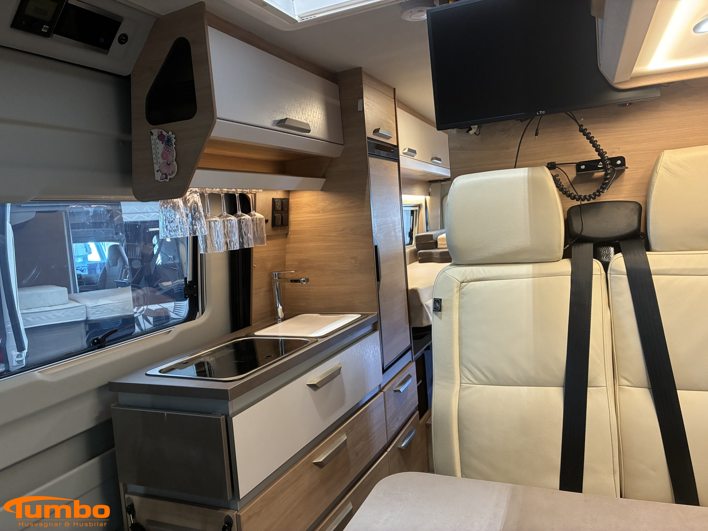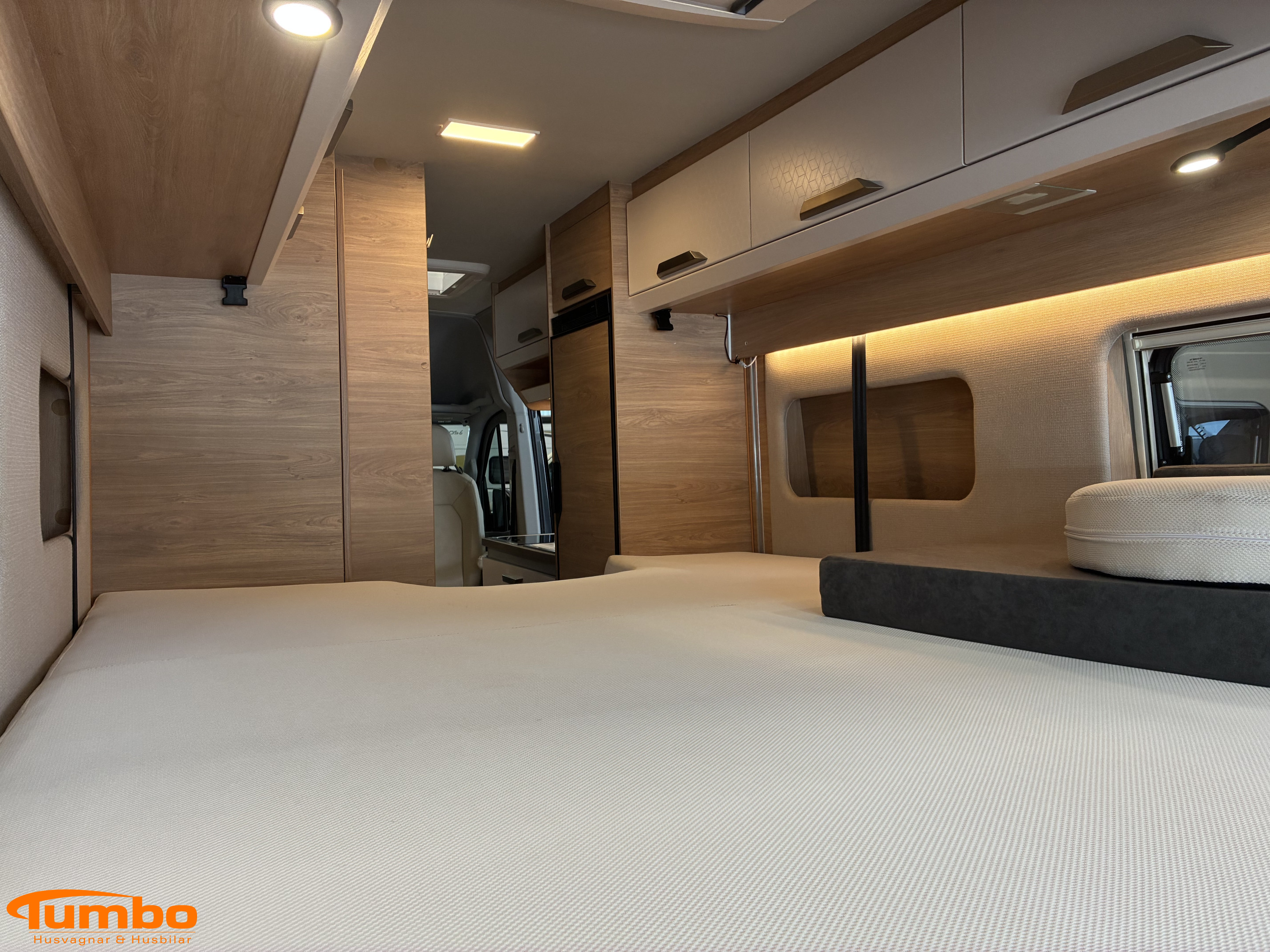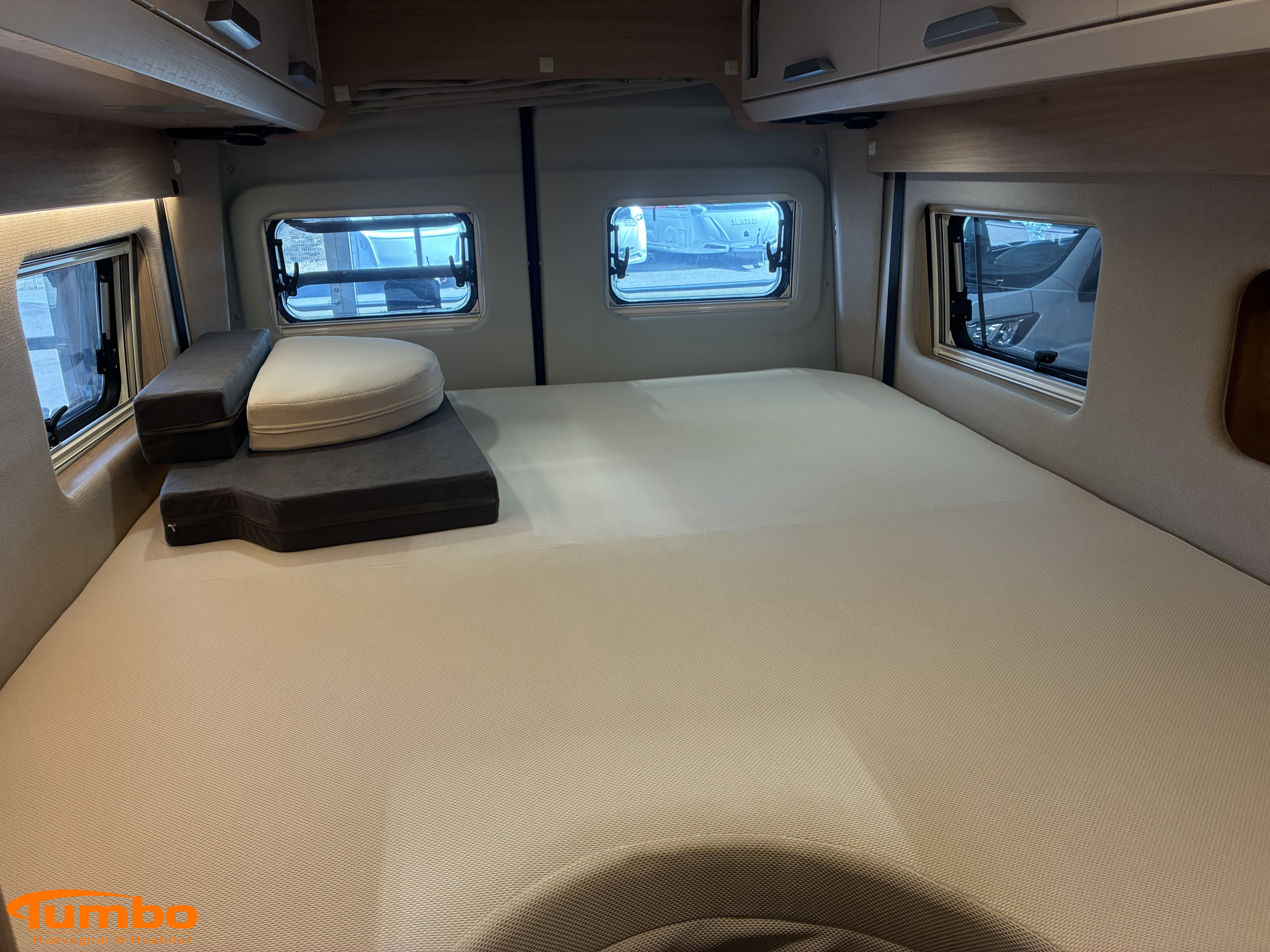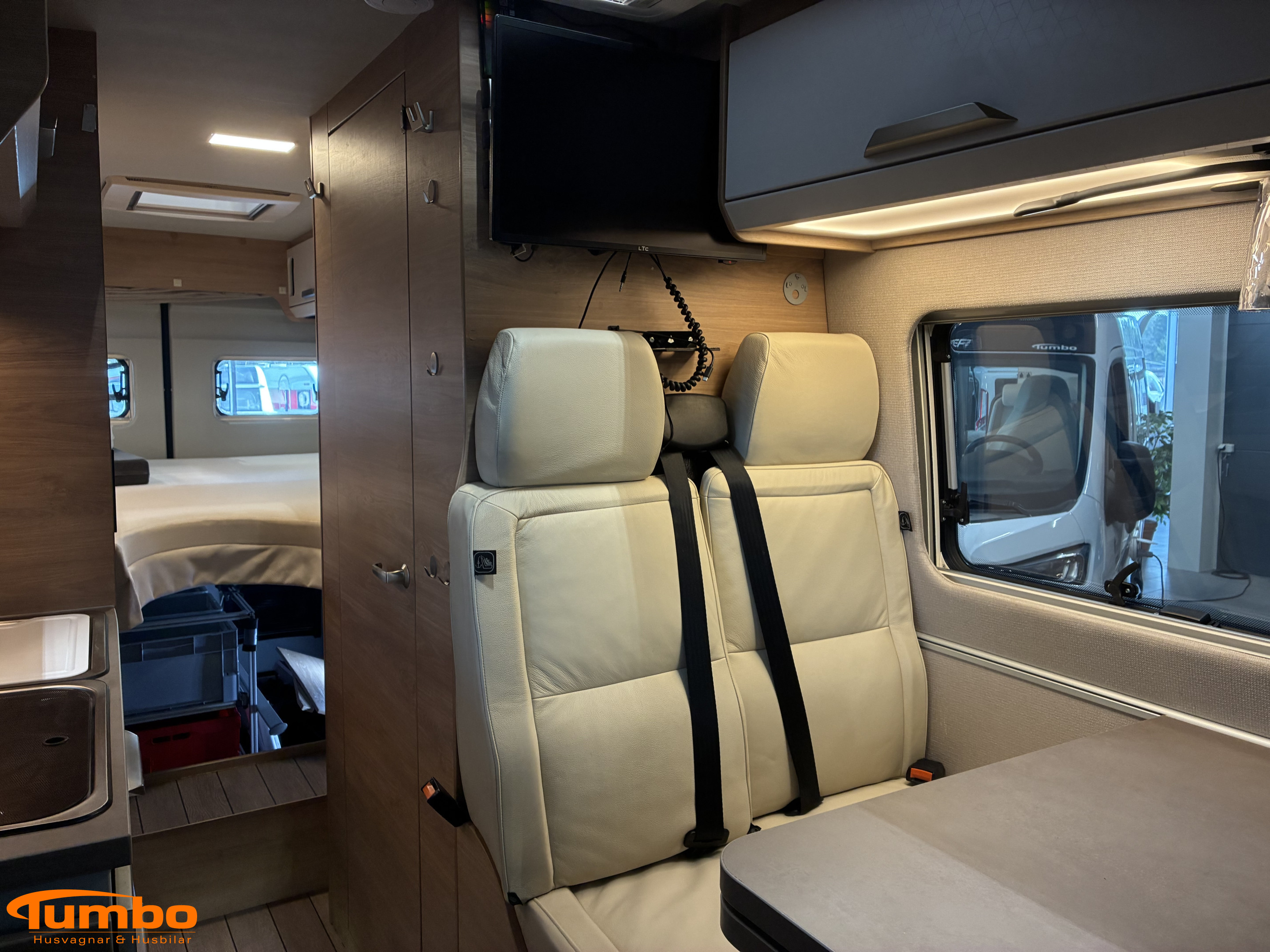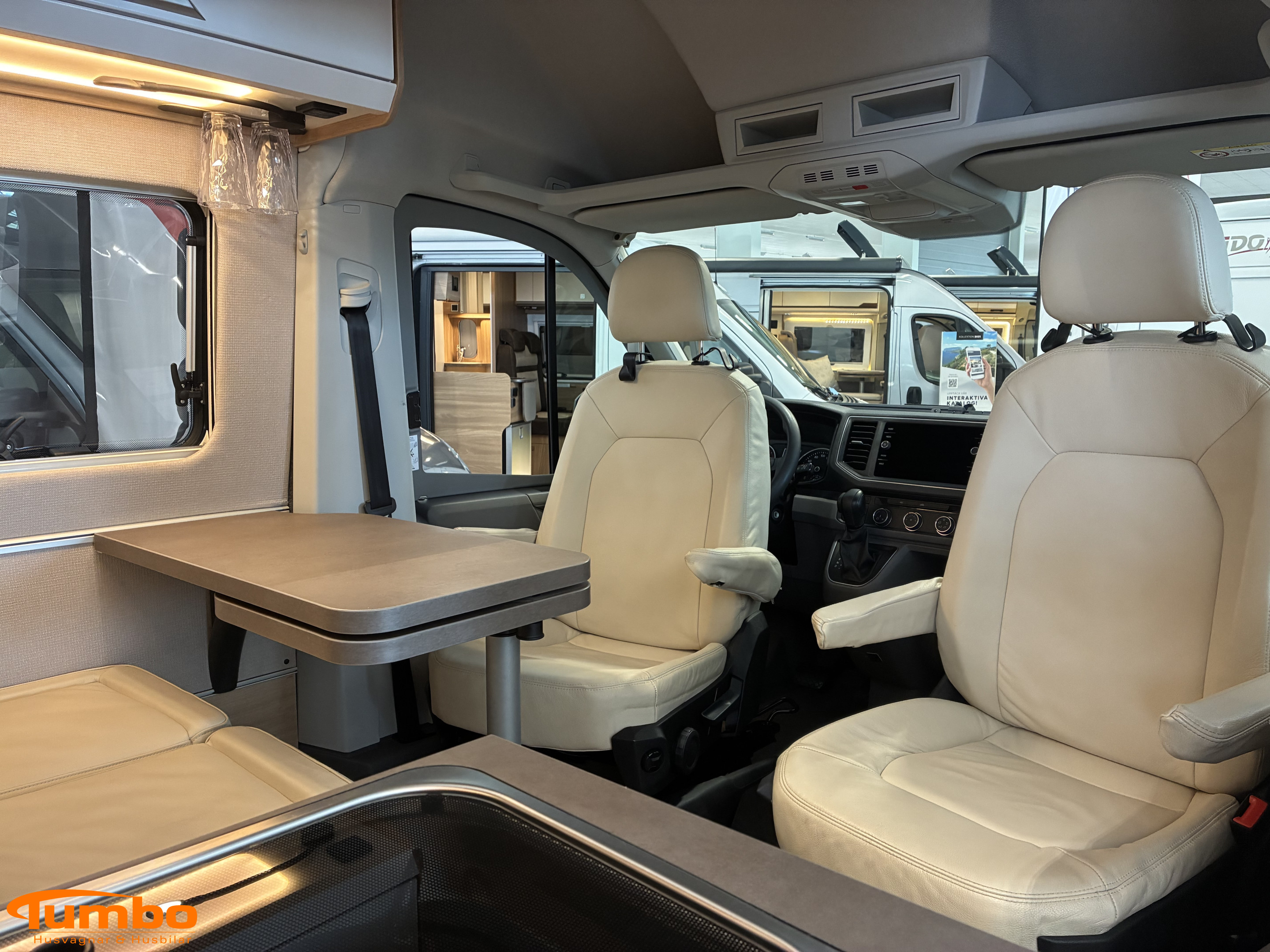 Litiumbatteri 2 st, , Solceller 2 st 160W, , Fast gasoltank, Truma diesel med elpatron, , TV med router, , Konstläderklädsel creme, , Hydraliska stödben, , Utdragbart lådsystem i garaget,