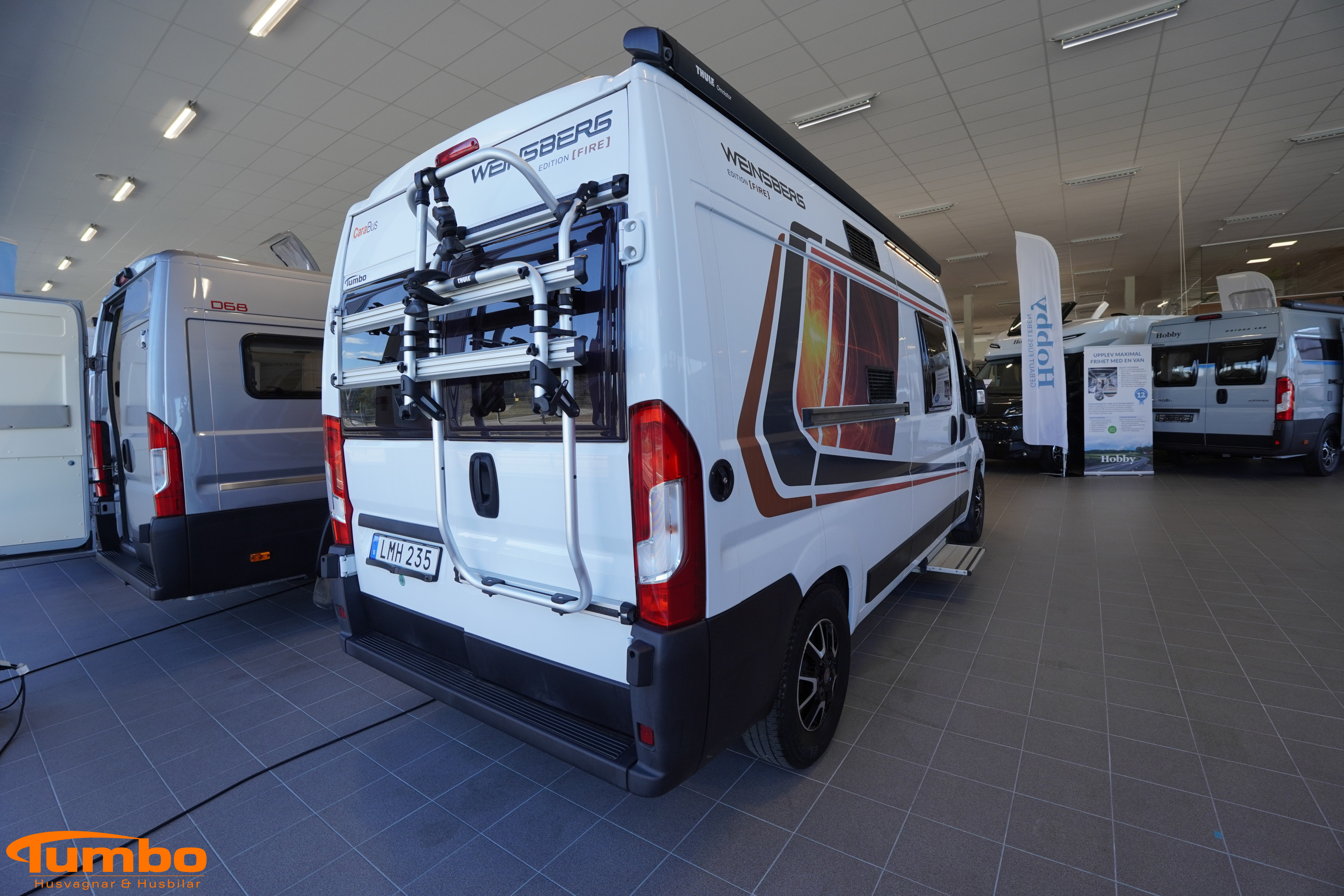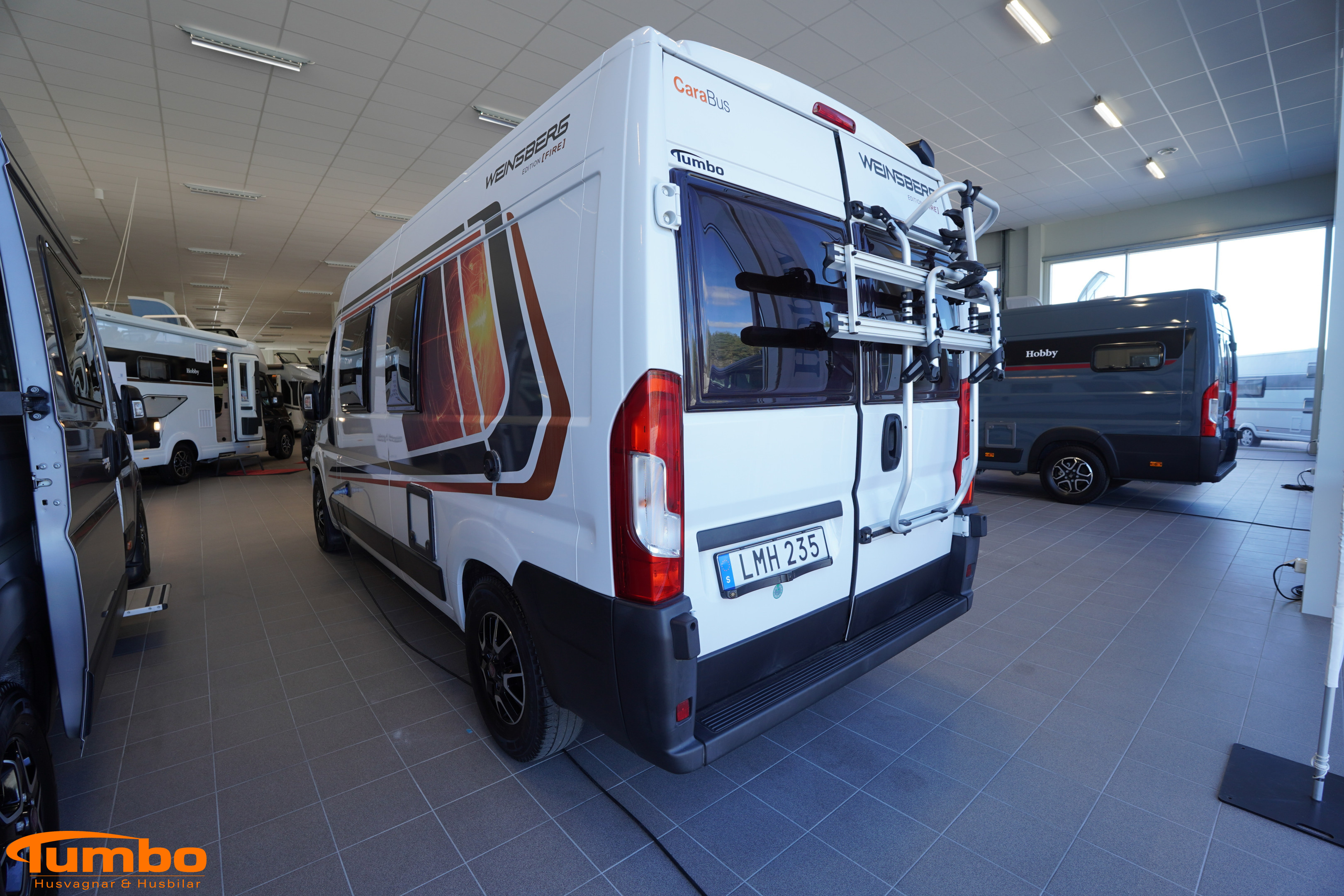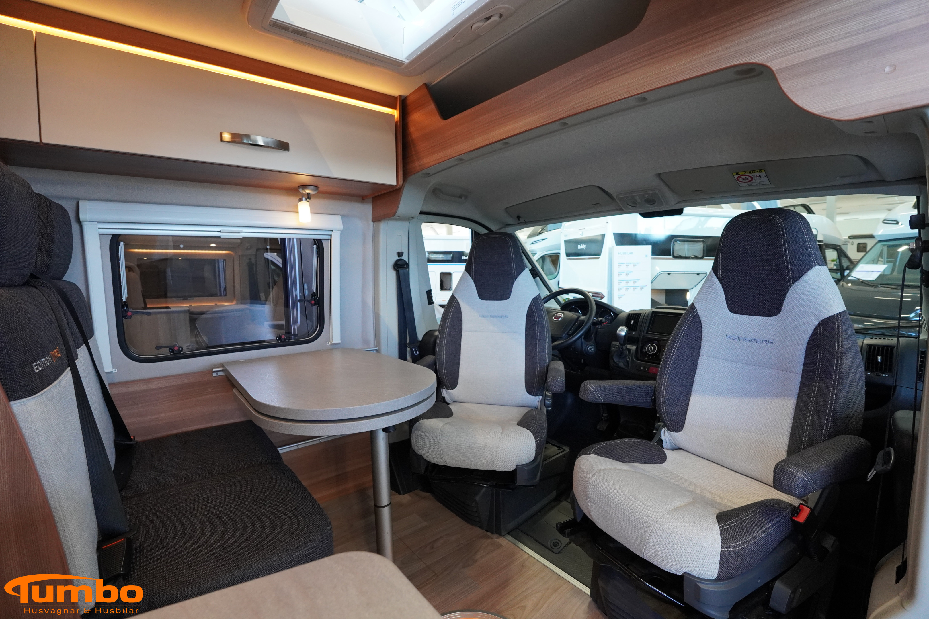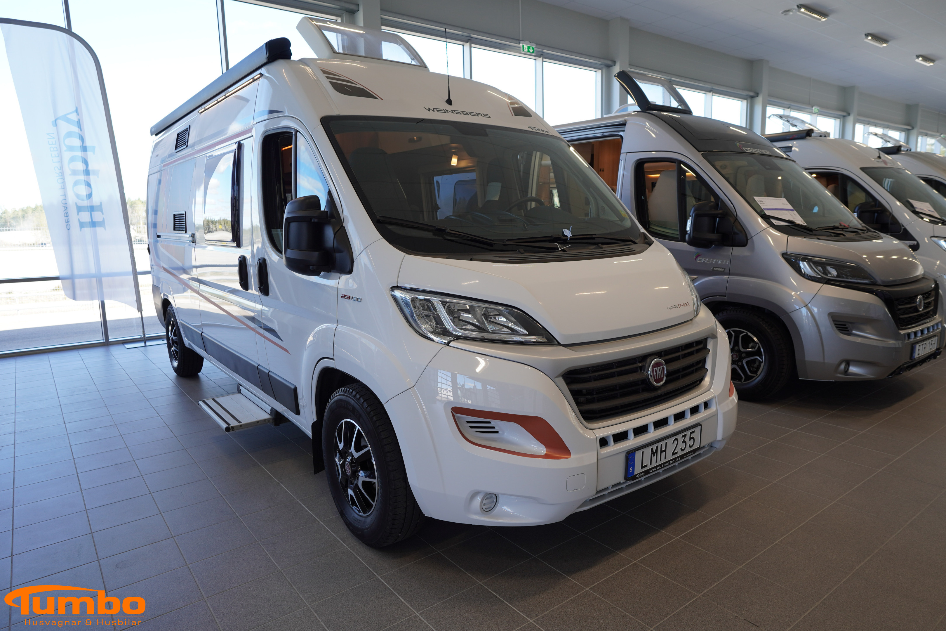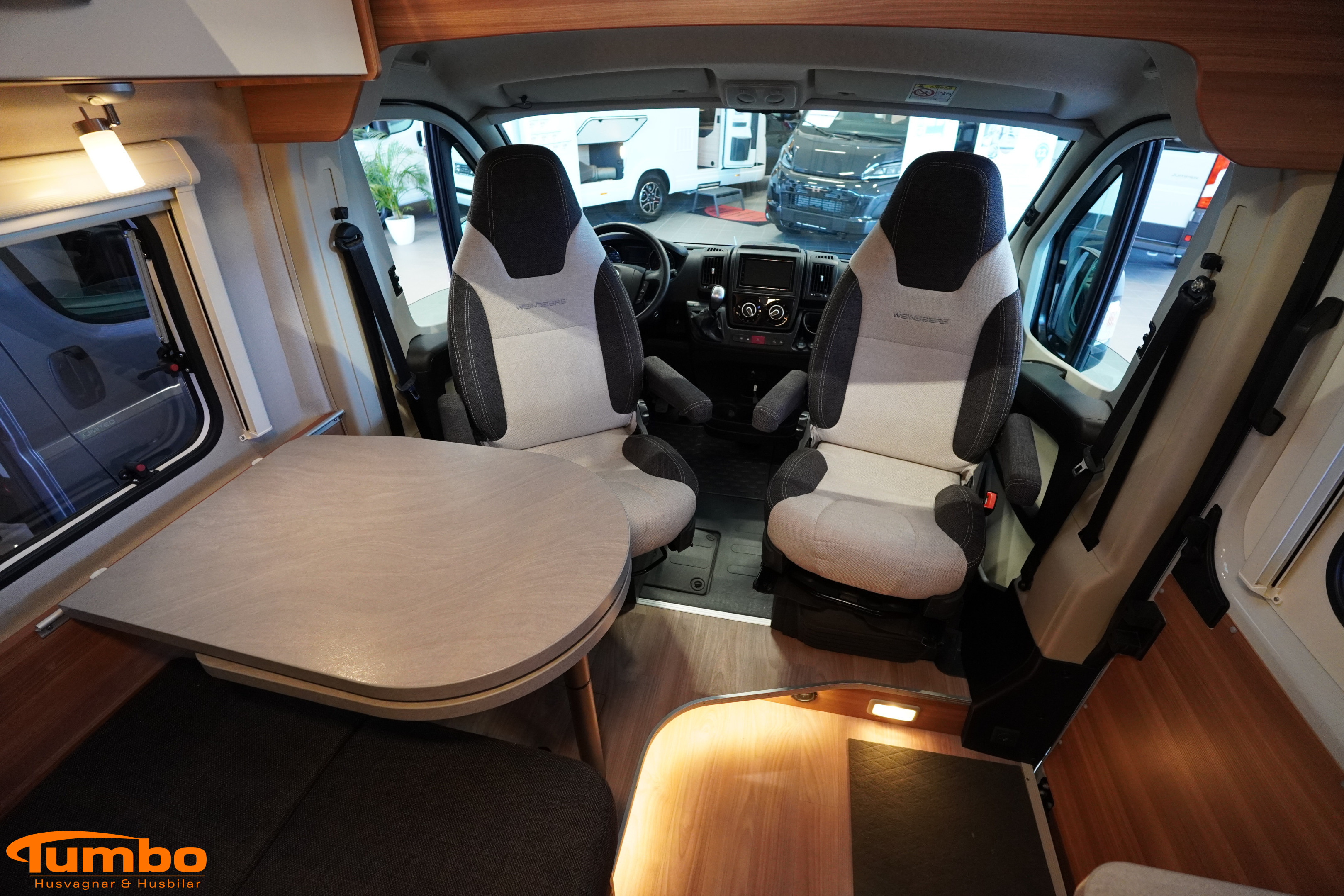 En begagnad husbil från Weinsberg, årsmodell 2018. Som har rullat 4917 mil, Automatväxellåda med en 131 hk stark motor. Med plats för 3 passagerare och 2 sovplatser. Uppvärmining med Truma värme m. elpatron